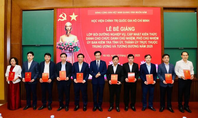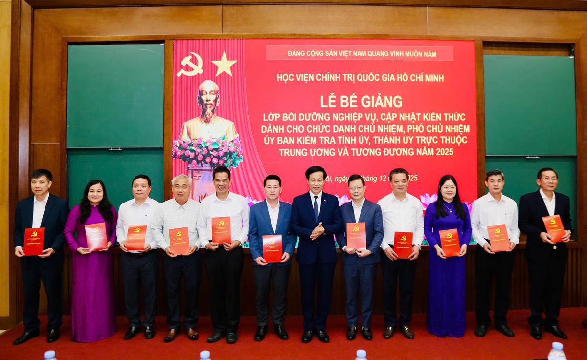 Báo cáo tổng kết Lớp được trình bày tại buổi Lễ cho biết, Lớp bồi dưỡng, cập nhật kiến thức đối với chức danh Chủ nhiệm, Phó Chủ nhiệm Uỷ ban Kiểm tra cấp uỷ cấp tỉnh, thành phố trực thuộc Trung ương và tương đương năm 2025 được tiến hành từ ngày 9/12/2025 đến ngày 13/12/2025, dành cho các đồng chí là Chủ nhiệm, Phó Chủ nhiệm Uỷ ban Kiểm tra cấp uỷ cấp tỉnh, thành phố trực thuộc Trung ương và tương đương, trong đó có 08 đồng chí là Uỷ viên Ban Thường vụ Tỉnh uỷ.