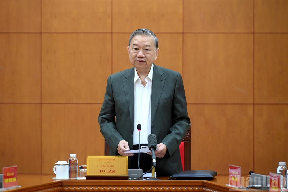 Tổng Bí thư Tô Lâm phát biểu tại cuộc làm việc. (Ảnh: ĐĂNG KHOA)