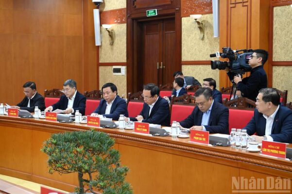Các đồng chí Thường trực các Tiểu ban Đại hội XIV của Đảng tham dự cuộc làm việc. (Ảnh: ĐĂNG KHOA)