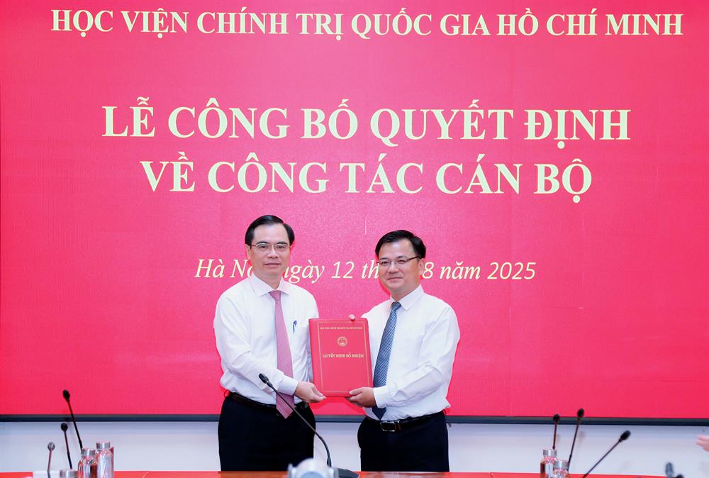 PGS,TS Dương Trung Ý, Phó Giám đốc Học viện Chính trị quốc gia Hồ Chí Minh trao Quyết định bổ nhiệm lại cho đồng chí Nguyễn Mậu Tuân