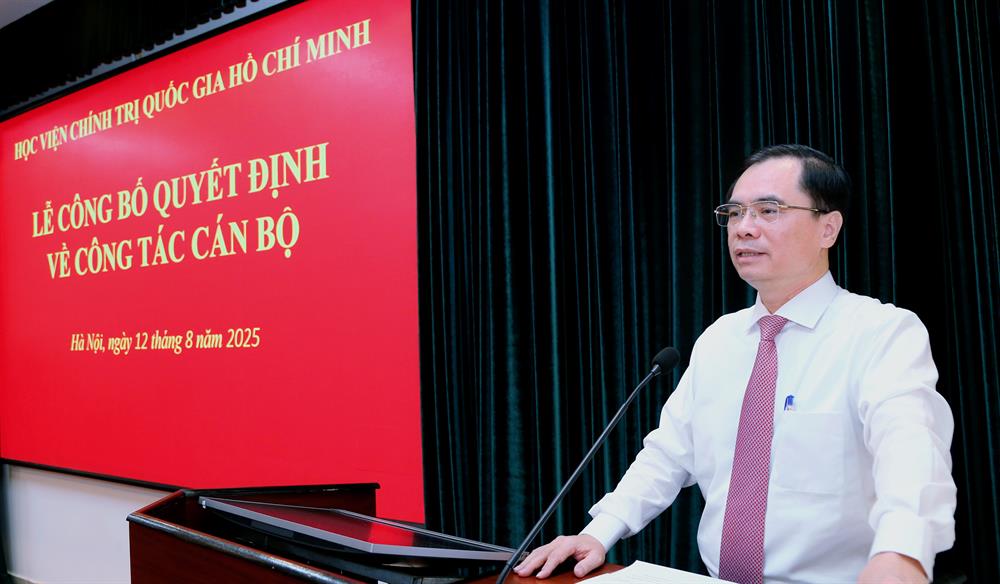 PGS,TS Dương Trung Ý, Phó Giám đốc Học viện Chính trị quốc gia Hồ Chí Minh phát biểu giao nhiệm vụ tại buổi Lễ
