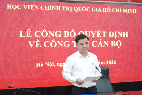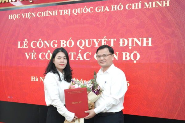 Sáng ngày 13/3/2026, thừa ủy quyền của Giám đốc Học viện Chính trị quốc gia Hồ Chí Minh, Nhà xuất bản Lý luận chính trị trang trọng tổ chức Lễ công bố Quyết định của Giám đốc Học viện về việc bổ nhiệm ThS Phạm Thị Đào Trâm giữ chức vụ Phó Trưởng phòng Biên tập.