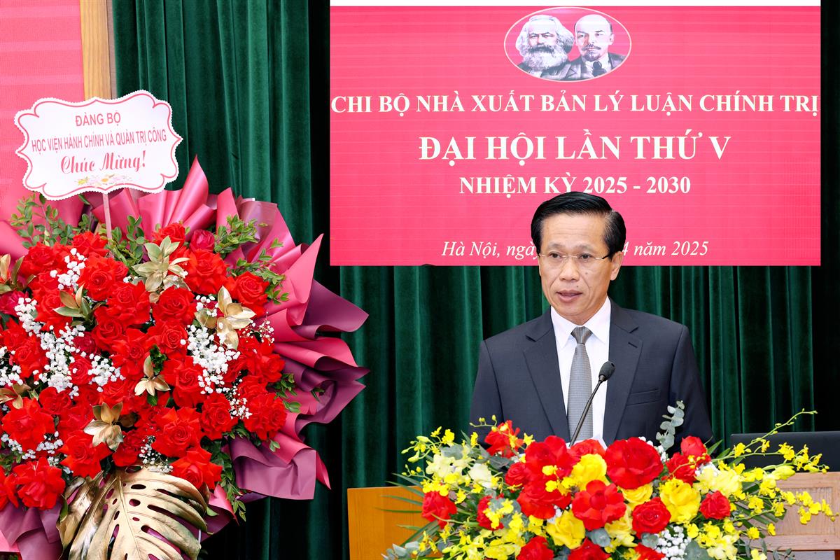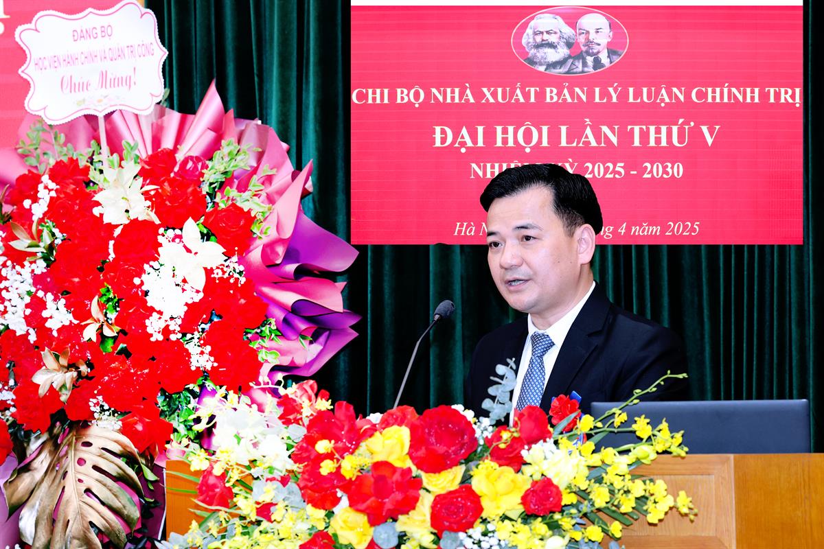 Phát biểu tại Đại hội, PGS,TS Hoàng Phúc Lâm, Phó Bí thư Đảng uỷ Học viện, Phó Giám đốc Học viện Chính trị quốc gia Hồ Chí Minh khẳng định, Đại hội Chi bộ Nhà xuất bản Lý luận chính trị lần thứ V nhiệm kỳ 2025-2030 là đại hội có ý nghĩa quan trọng, được Ban Thường vụ Đảng ủy Học viện lựa chọn là đại hội điểm cấp cơ sở để trực tiếp chỉ đạo nhằm rút kinh nghiệm về công tác tổ chức đại hội đảng cấp cơ sở, tiến tới Đại hội đại biểu Đảng Học viện lần thứ V, nhiệm kỳ 2025-2030.