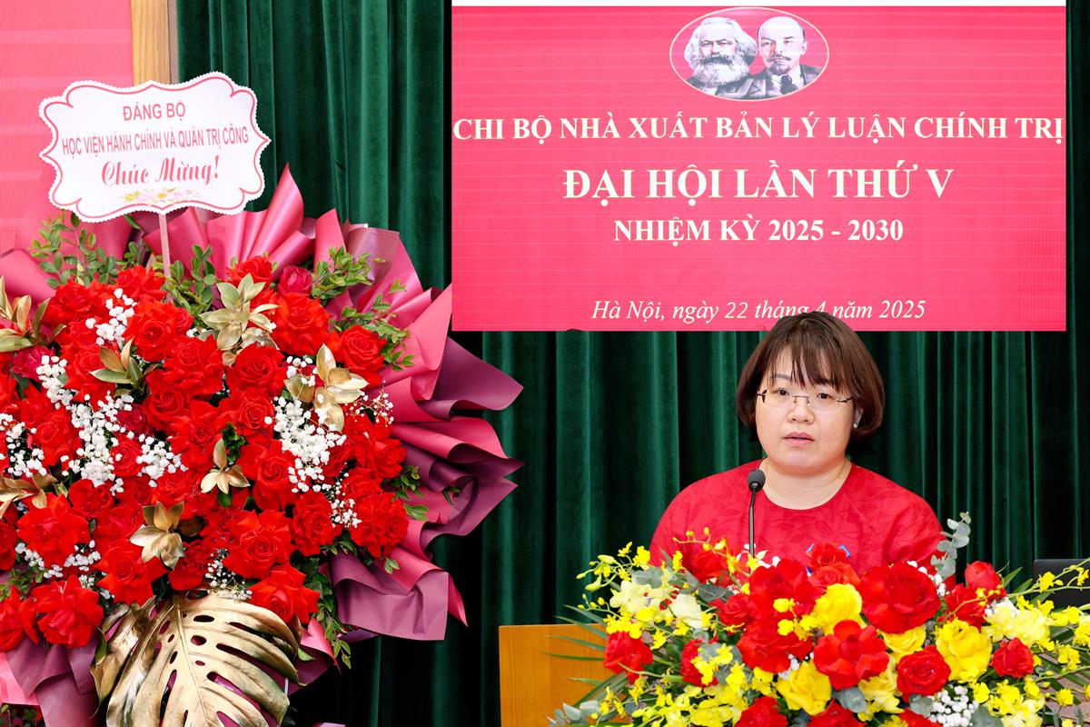 Đồng chí Phó Bí thư Đảng uỷ Học viện, Phó Giám đốc Học viện Chính trị quốc gia Hồ Chí Minh nhấn mạnh Nhà xuất bản Lý luận chính trị cần tiếp tục phát huy truyền thống đoàn kết, thống nhất trong Chi bộ và đơn vị, trước hết và quan trọng nhất là đoàn kết thống nhất trong cấp ủy, tập thể lãnh đạo; thực hiện dân chủ rộng rãi để huy động, khai thác được sức mạnh của tập thể Chi bộ, đơn vị, khát vọng cống hiến của cán bộ, đảng viên; đề cao vai trò, trách nhiệm và tính nêu gương của Chi uỷ, lãnh đạo và của người đứng đầu trong thực hiện nhiệm vụ chính trị; xây dựng Nhà xuất bản Lý luận chính trị vươn tầm trở thành nhà xuất bản có uy tín trong lĩnh vực xuất bản sách, nhất là sách lý luận chính trị; là địa chỉ tin cậy công bố các công trình khoa học ngang tầm khu vực, quốc tế để góp phần phục vụ công tác đào tạo nguồn nhân lực chất lượng cao của Học viện và cả nước.