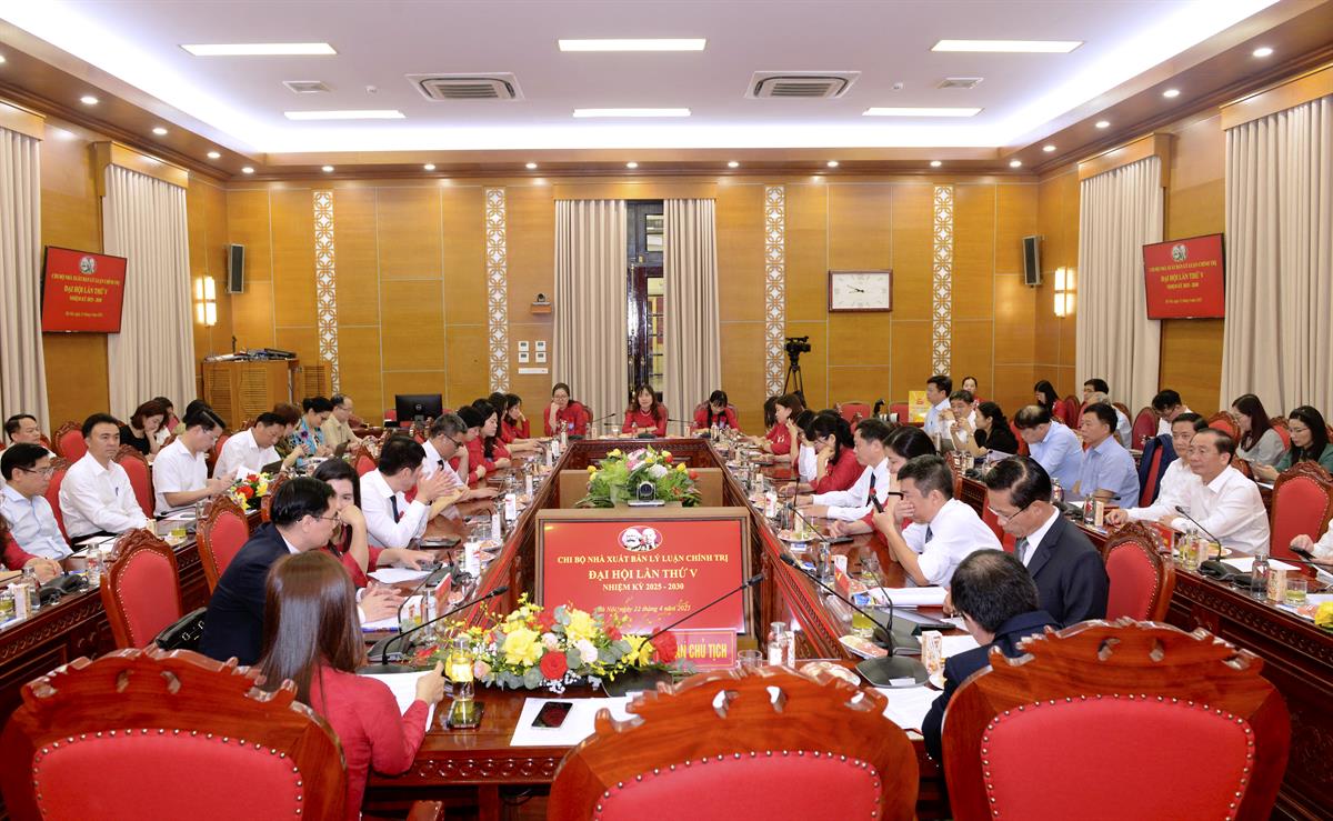 Đại hội Chi bộ Nhà xuất bản Lý luận chính trị lần thứ V, nhiệm kỳ 2025-2030 đã diễn ra thành công rực rỡ. Với tư duy và tầm nhìn mới, kế thừa và phát huy những kết quả đã đạt được trong nhiệm kỳ vừa qua, cùng truyền thống đoàn kết, tinh thần xây dựng và trách nhiệm, Nghị quyết Đại hội Chi bộ Nhà xuất bản Lý luận chính trị lần thứ V nhiệm kỳ 2025-20230 được Đại hội thông qua đã thể hiện ý chí, khát vọng, quyết tâm vươn lên mạnh mẽ của Chi bộ và Nhà xuất bản Lý luận chính trị trên con đường đổi mới và phát triển, khẳng định uy tín, thương hiệu của Nhà xuất bản Lý luận chính trị – cơ quan xuất bản của Học viện Chính trị quốc gia Hồ Chí Minh, góp phần xứng đáng vào sự nghiệp xây dựng và bảo vệ Tổ quốc Việt Nam xã hội chủ nghĩa.