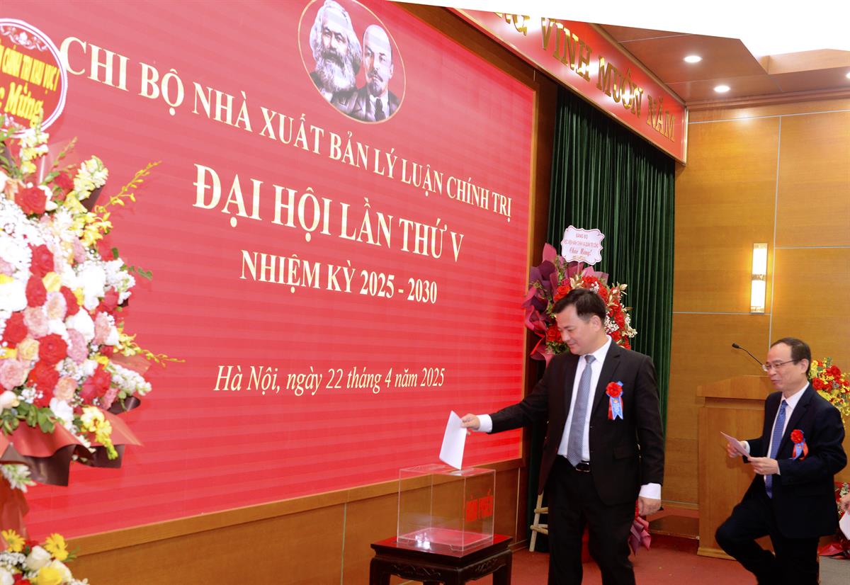Với tinh thần công tâm, trong sáng, dân chủ, khách quan, Chi bộ Nhà xuất bản Lý luận chính trị đã bầu Chi ủy nhiệm kỳ 2025-2030 gồm 05 đồng chí và bầu Bí thư, Phó Bí thư Chi bộ. Cụ thể, đồng chí Nguyễn Mậu Tuân, Bí thư Chi bộ nhiệm kỳ 2020-2025 tái cử Bí thư Chi bộ nhiệm kỳ 2025-2030; đồng chí Mai Hoài Anh, Chi ủy viên nhiệm kỳ 2020-2025 tái cử cấp ủy và được bầu giữ chức vụ Phó Bí thư Chi bộ nhiệm kỳ 2025-2030.