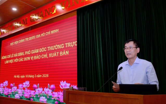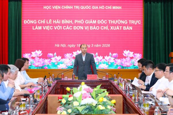Chiều 18/3/2026, tại Học viện Chính trị quốc gia Hồ Chí Minh, PGS,TS Lê Hải Bình, Ủy viên Ban Chấp hành Trung ương Đảng, Phó Giám đốc thường trực Học viện đã chủ trì buổi làm việc với các đơn vị thông tin, báo chí, xuất bản thuộc Học viện nhằm đánh giá kết quả hoạt động và định hướng nhiệm vụ trọng tâm trong giai đoạn tới.