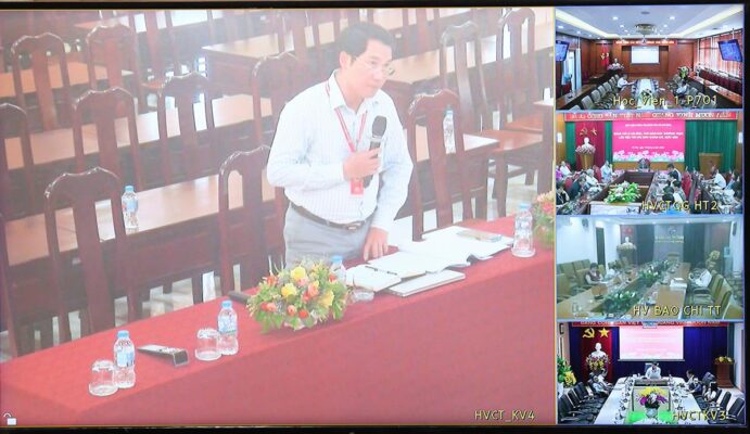 Tham dự buổi làm việc có các đồng chí trong Thường trực Liên chi Hội Nhà báo Học viện; lãnh đạo các Học viện trực thuộc, các đơn vị chức năng; cùng tập thể lãnh đạo các đơn vị thông tin, báo chí, xuất bản trong toàn hệ thống Học viện. Buổi làm việc được tổ chức bằng hình thức trực tiếp kết hợp trực tuyến từ Trung tâm Học viện đến tất cả các điểm cầu tại các Học viện khu vực.