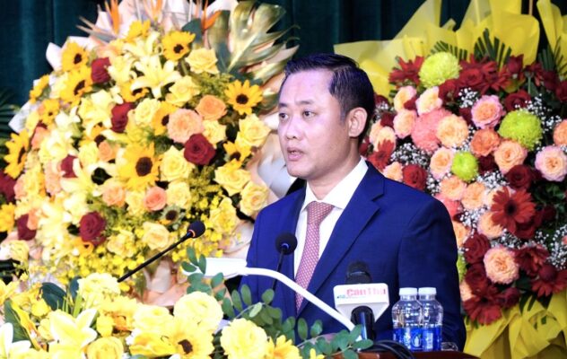 Đồng chí Dương Sà Kha, Ủy viên Ban thường vụ Thành ủy Cần Thơ, Bí thư Đảng ủy phường Sóc Trăng đại diện cựu học viên phát biểu