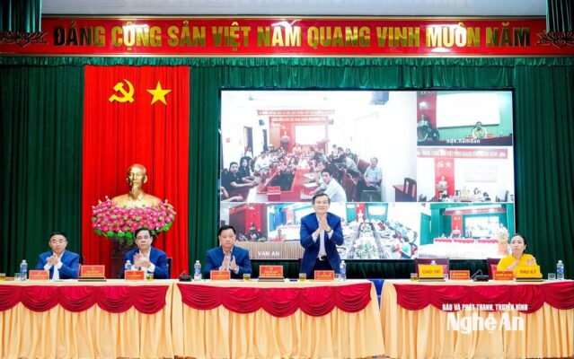 Hội nghị được thực hiện bằng hình thức trực tiếp kết hợp với trực tuyến từ trụ sở Đảng ủy xã Kim Liên đến các xã: Vạn An, Nam Đàn, Thiên Nhẫn, Đại Huệ.