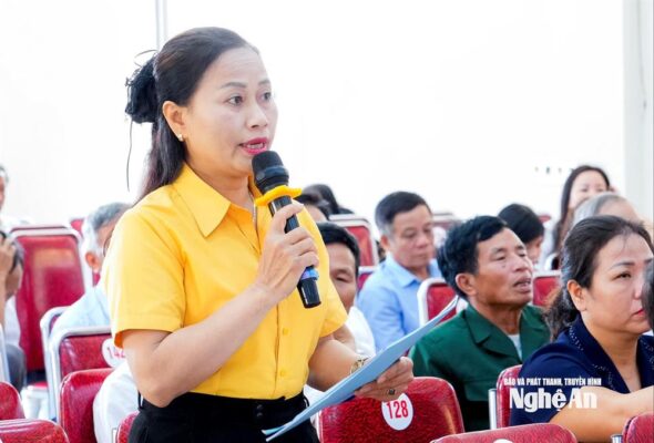 Cử tri Trần Thị Thủy (xã Kim Liên) đề nghị điều chỉnh tăng phụ cấp cho đội ngũ cán bộ, những người làm việc tại cơ sở; tăng cường các hội nghị tiếp xúc cử tri chuyên đề về quản lý đất đai, bảo vệ môi trường, chính sách an sinh xã hội.