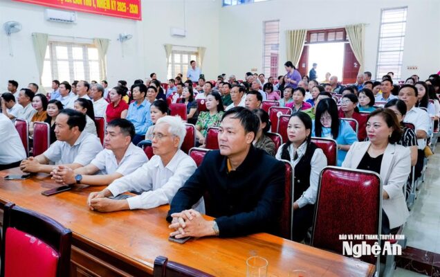 Toàn cảnh hội nghị tiếp xúc giữa cử tri 5 xã: Kim Liên, Vạn An, Nam Đàn, Thiên Nhẫn, Đại Huệ với người ứng cử đại biểu Quốc hội khóa XVI, đại biểu HĐND tỉnh nhiệm kỳ 2026 – 2031.
