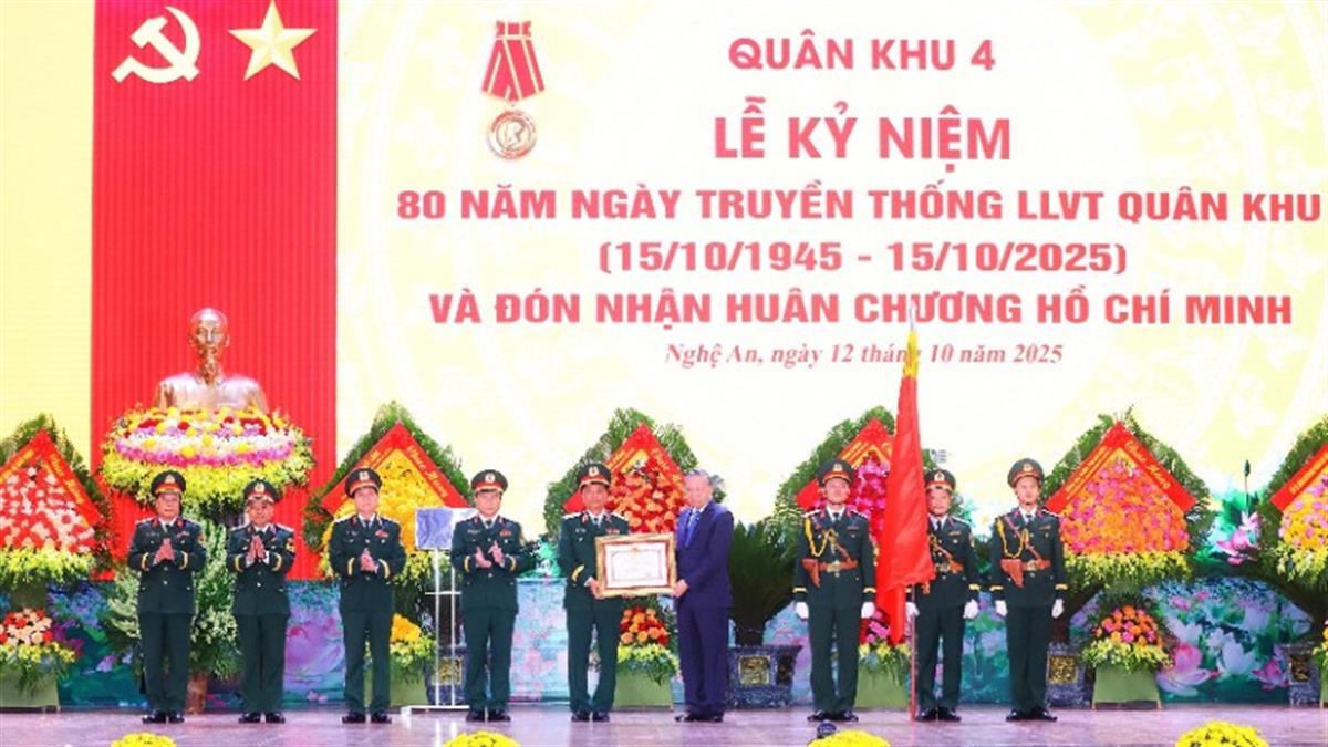 Tổng Bí thư Tô Lâm trao tặng Huân chương Hồ Chí Minh cho Quân khu 4.