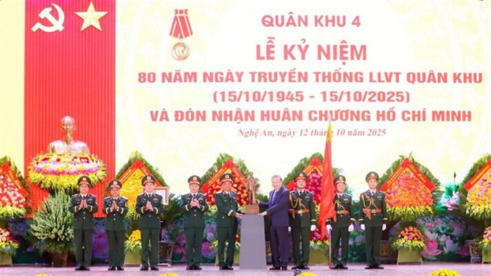 “Hôm nay, Lực lượng vũ trang Quân khu tiếp tục được Đảng, Nhà nước tặng thưởng Huân chương Hồ Chí Minh lần thứ ba – Phần thưởng cao quý, khẳng định tầm vóc và đóng góp to lớn của Lực lượng vũ trang Quân khu trong sự nghiệp cách mạng của Đảng, của dân tộc”, Tư lệnh Quân khu 4 chia sẻ.