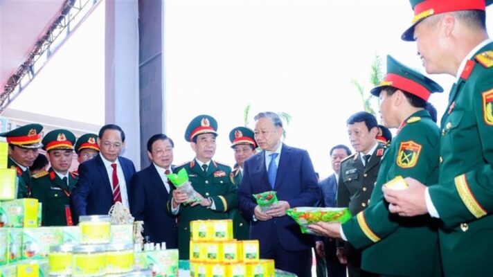 Tổng Bí thư Tô Lâm cùng các đồng chí Lãnh đạo Đảng, Nhà nước tham quan gian trưng bày các sản phẩm OCOP tiêu biểu của các địa phương.
