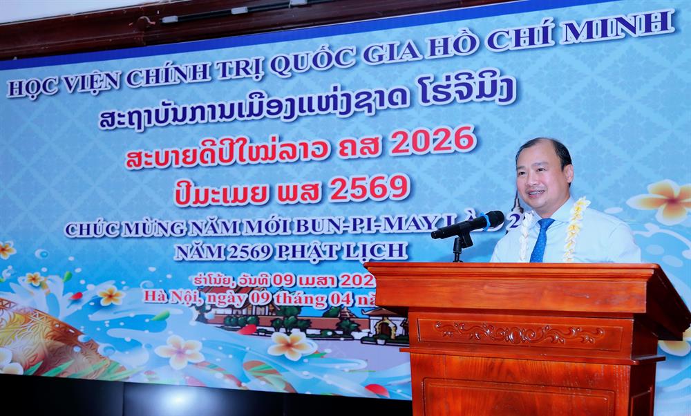 Phát biểu tại buổi Lễ, PGS,TS Lê Hải Bình, Ủy viên Trung ương Đảng, Phó Giám đốc thường trực Học viện bày tỏ niềm vui mừng khi được hòa chung không khí đón Tết cổ truyền Bun Pi May – một trong những dịp lễ truyền thống quan trọng nhất của nhân dân Lào. Thay mặt Đảng ủy, Ban Giám đốc Học viện, PGS,TS Lê Hải Bình gửi tới đại diện Đại sứ quán Lào tại Việt Nam, cùng toàn thể lưu học sinh Lào lời chúc năm mới sức khỏe, hạnh phúc và thành công.