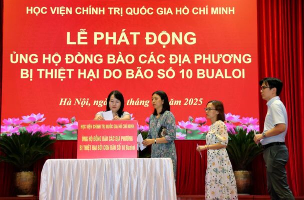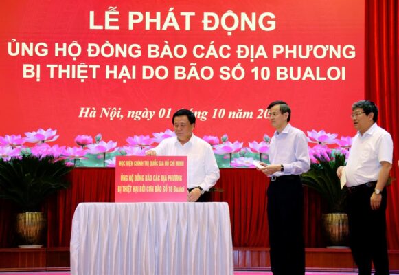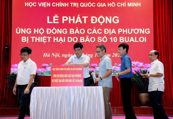 Phát biểu tại Lễ phát động ủng hộ đồng bào các địa phương bị thiệt hại do cơn bão số 10 gây ra, GS,TS Nguyễn Xuân Thắng, Ủy viên Bộ Chính trị, Giám đốc Học viện, Chủ tịch Hội đồng lý luận Trung ương nhấn mạnh: Phát huy truyền thống đoàn kết, tinh thần “tương thân tương ái, lá lành đùm lá rách” của dân tộc, Học viện Chính trị quốc gia Hồ Chí Minh tổ chức Lễ phát động quyên góp, kịp thời chia sẻ khó khăn với bà con vùng bị ảnh hưởng.