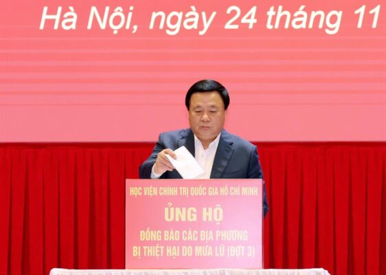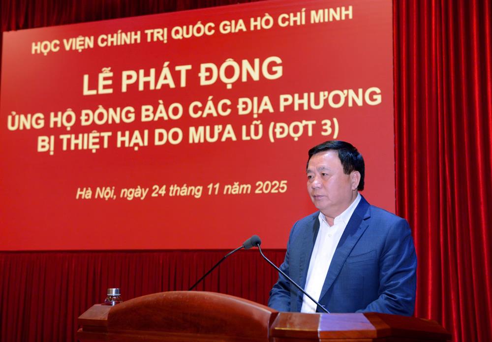Đồng chí Ủy viên Bộ Chính trị, Giám đốc Học viện, Chủ tịch Hội đồng Lý luận Trung ương cho biết: phát huy truyền thống tương thân tương ái, chia ngọt sẻ bùi, Học viện Chính trị quốc gia Hồ Chí Minh luôn chủ động, tiên phong trong các hoạt động hỗ trợ đồng bào vùng thiên tai. Đây là đợt phát động thứ ba trong thời gian ngắn mà toàn thể cán bộ, giảng viên, học viên Học viện chung tay góp sức ủng hộ, thể hiện rõ tinh thần nhân ái, trách nhiệm xã hội và tình cảm sẻ chia đối với những khó khăn, mất mát của nhân dân.