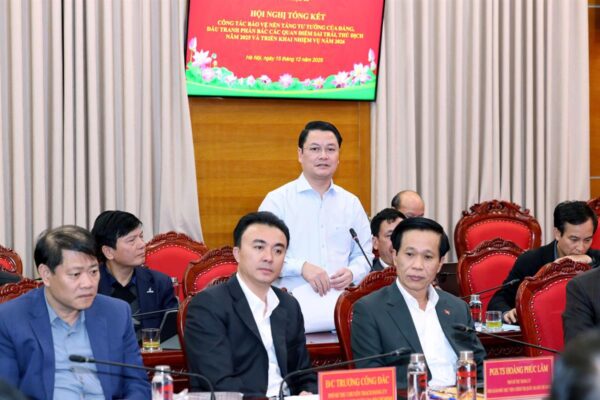 Báo cáo cũng nhấn mạnh, Cuộc thi chính luận về bảo vệ nền tảng tư tưởng của Đảng lần thứ Năm, năm 2025 tiếp tục khẳng định sức lan tỏa sâu rộng, rõ nét trong hệ thống chính trị và toàn xã hội, với 541.766 tác phẩm trên 05 loại hình, tăng hơn 73.000 tác phẩm so với năm 2024. Cuộc thi là hoạt động thiết thực góp phần củng cố lòng yêu nước, niềm tự hào dân tộc và khát vọng phát triển trong mỗi cán bộ, đảng viên và nhân dân; đồng thời tăng cường thống nhất nhận thức trong toàn Đảng, củng cố đồng thuận xã hội và thúc đẩy hành động cụ thể trong bối cảnh sắp xếp, tinh gọn bộ máy và triển khai chính quyền địa phương hai cấp. Qua đó, Cuộc thi trở thành diễn đàn đấu tranh chính luận rộng mở, quy tụ đông đảo lực lượng trong nước và một số học giả, chính khách quốc tế uy tín, tạo dòng thông tin chủ lưu tích cực và khẳng định tính chuyên nghiệp, đồng bộ trong công tác tổ chức từ Trung ương đến địa phương.