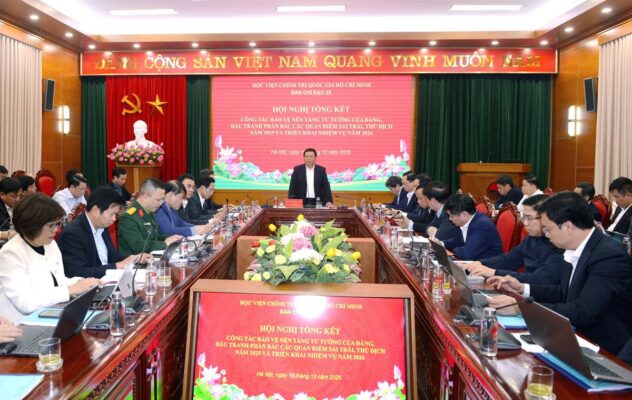 Năm 2025, Học viện triển khai toàn diện và hiệu quả công tác bảo vệ nền tảng tư tưởng của Đảng, gắn chặt giữa đào tạo, bồi dưỡng với tuyên truyền, đấu tranh trên cả không gian truyền thống và môi trường số. Nội dung bảo vệ nền tảng tư tưởng được tích hợp sâu vào các chương trình lý luận chính trị, bồi dưỡng cán bộ, giảng viên, học viên theo hướng chuyển từ truyền thụ kiến thức sang nâng cao nhận thức, thái độ và hành vi thực tiễn, tạo chuyển biến rõ nét. Song song với đó, các hoạt động truyền thông được tổ chức đồng bộ, góp phần lan tỏa mạnh mẽ thông tin chính thống, thu hút hàng trăm nghìn lượt tiếp cận và tương tác xã hội. Hệ thống báo chí, xuất bản, cổng thông tin điện tử và các nền tảng số không chỉ phản bác trực diện các quan điểm sai trái, xuyên tạc mà còn đóng góp luận cứ khoa học phục vụ xây dựng Văn kiện Đại hội XIV và các vấn đề chiến lược của Đảng. Các trường chính trị và học viện trực thuộc phát huy vai trò nòng cốt thông qua đào tạo, hội thảo, tọa đàm, các cuộc thi chính luận và tập huấn chuyên sâu, mở rộng phối hợp với các ban, bộ, ngành, địa phương, qua đó tạo sức lan tỏa sâu rộng trong hệ thống chính trị, góp phần giữ vững và củng cố trận địa tư tưởng của Đảng trong tình hình mới.