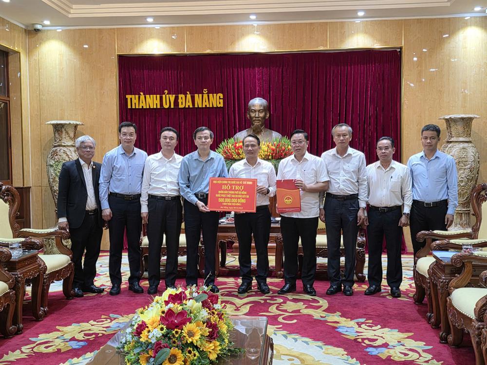 Đồng chí Đoàn Minh Huấn trao tặng khoản hỗ trợ 500 triệu đồng cho chính quyền và nhân dân thành phố Đà Nẵng