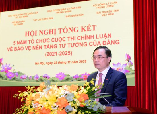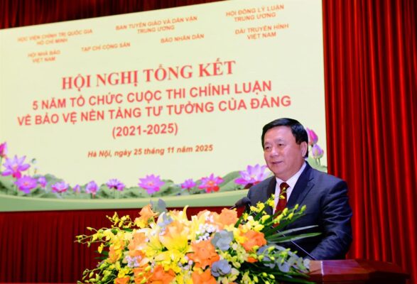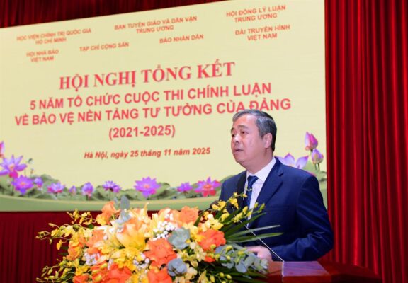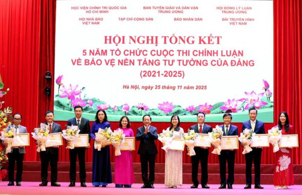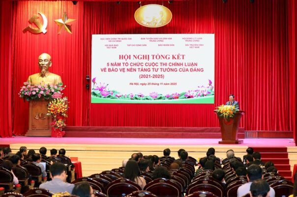 Chiều ngày 25/11/2025, Học viện Chính trị quốc gia Hồ Chí Minh chủ trì phối hợp với Ban Tuyên giáo và Dân vận Trung ương, Hội đồng Lý luận Trung ương, Báo Nhân dân, Tạp chí Cộng sản, Đài Truyền hình Việt Nam, Hội Nhà báo Việt Nam tổ chức Hội nghị tổng kết 05 năm tổ chức Cuộc thi chính luận về bảo vệ nền tảng tư tưởng của Đảng (2021-2025).