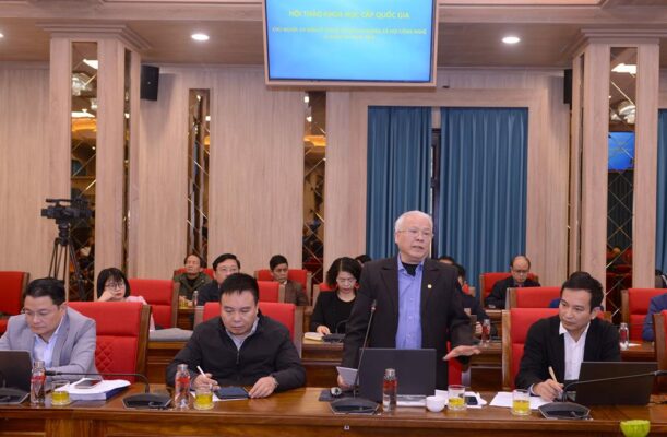 PGS,TS Nguyễn Mạnh Hùng, Phó Giám đốc Học viện Chính trị quốc gia Hồ Chí Minh, Phó Chủ tịch Hội đồng Lý luận Trung ương tham luận tại Hội thảo