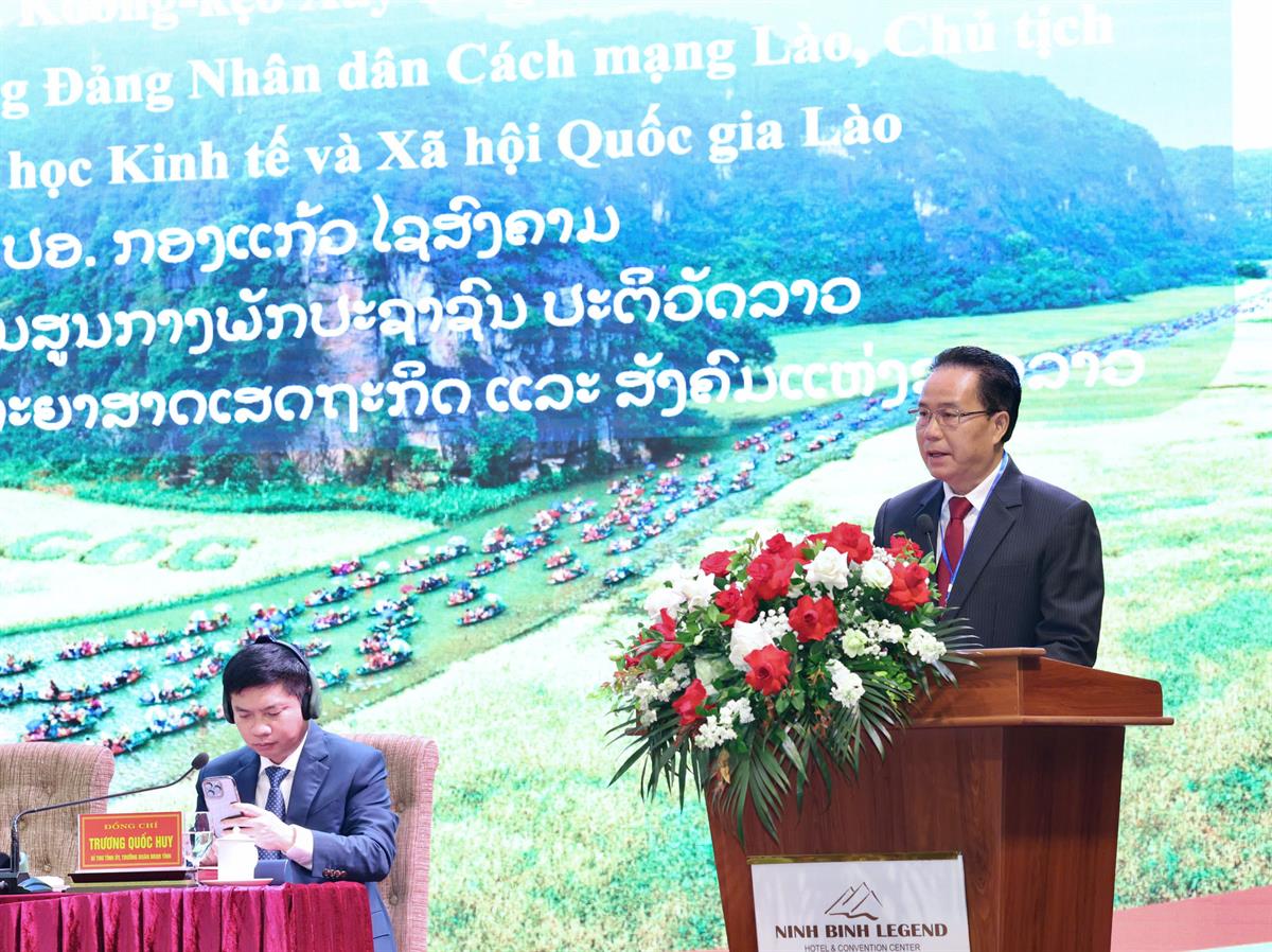 Phát biểu khai mạc và đề dẫn Hội thảo, GS,TS Nguyễn Xuân Thắng, Uỷ viên Bộ Chính trị, Giám đốc Học viện Chính trị quốc gia Hồ Chí Minh, Chủ tịch Hội đồng Lý luận Trung ương khẳng định Hội thảo “Phát triển kinh tế di sản: Kinh nghiệm của Việt Nam và Lào” là sự kiện quan trọng, góp phần làm sâu sắc thêm những vấn đề lý luận và thực tiễn trong phát triển kinh tế di sản ở Việt Nam và Lào. Đây là minh chứng sinh động cho sự hợp tác thường xuyên, thiết thực giữa bốn cơ quan khoa học hàng đầu của Việt Nam và Lào: Học viện Chính trị quốc gia Hồ Chí Minh, Học viện Chính trị và Hành chính quốc gia Lào, Viện Hàn lâm Khoa học xã hội Việt Nam, Viện Khoa học Kinh tế và Xã hội quốc gia Lào. Đặc biệt, Hội thảo càng có nhiều ý nghĩa hơn khi được tổ chức tại tỉnh Ninh Bình, nơi có quần thể Tràng An, một trong những Di sản Văn hóa và Thiên nhiên thế giới được UNESCO công nhận.