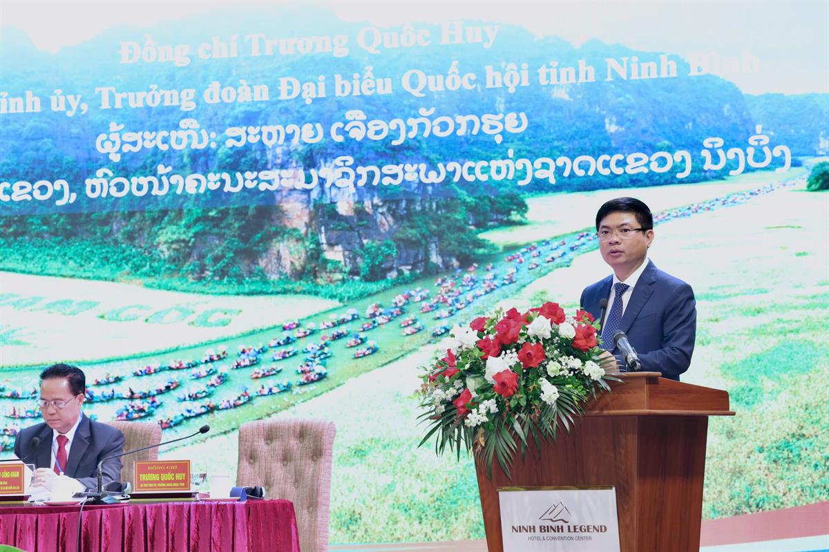 Đồng chí Trương Quốc Huy, Bí thư Tỉnh uỷ, Trưởng đoàn đại biểu Quốc hội tỉnh Ninh Bình phát biểu chào mừng Hội thảo