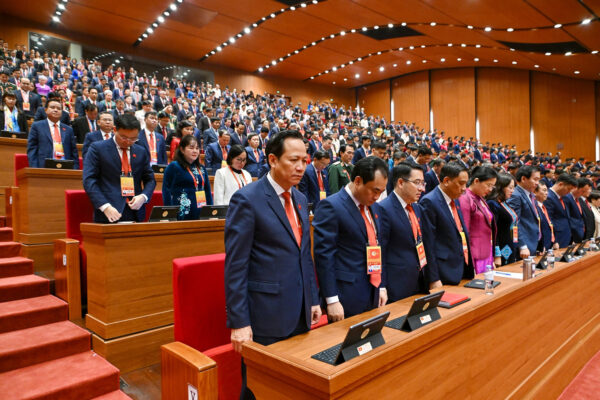 Đại hội dành một phút mặc niệm đồng chí cố Tổng Bí thư Nguyễn Phú Trọng và các đồng chí Ủy viên Trung ương Đảng đã mất trong nhiệm kỳ Đại hội XIII.