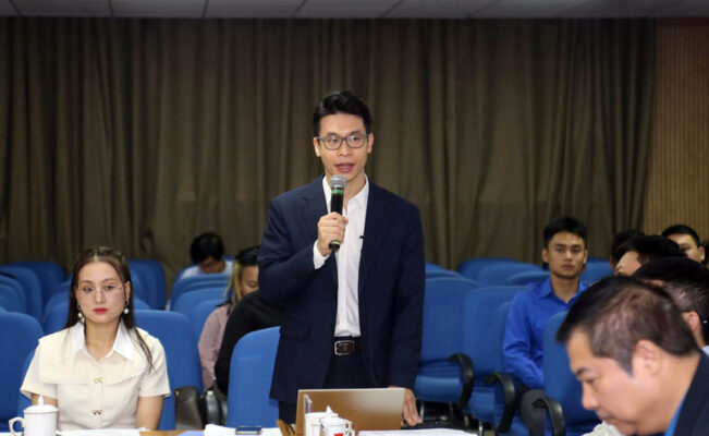 Đồng chí Nguyễn Phạm Duy Trang phát biểu ý kiến tại Hội nghị.