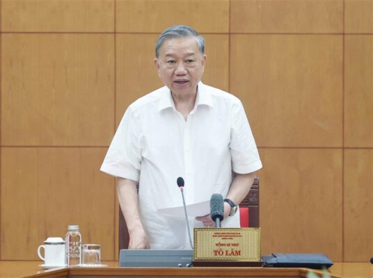 Tổng Bí thư Tô Lâm phát biểu chỉ đạo tại buổi làm việc. (Ảnh: TTXVN)